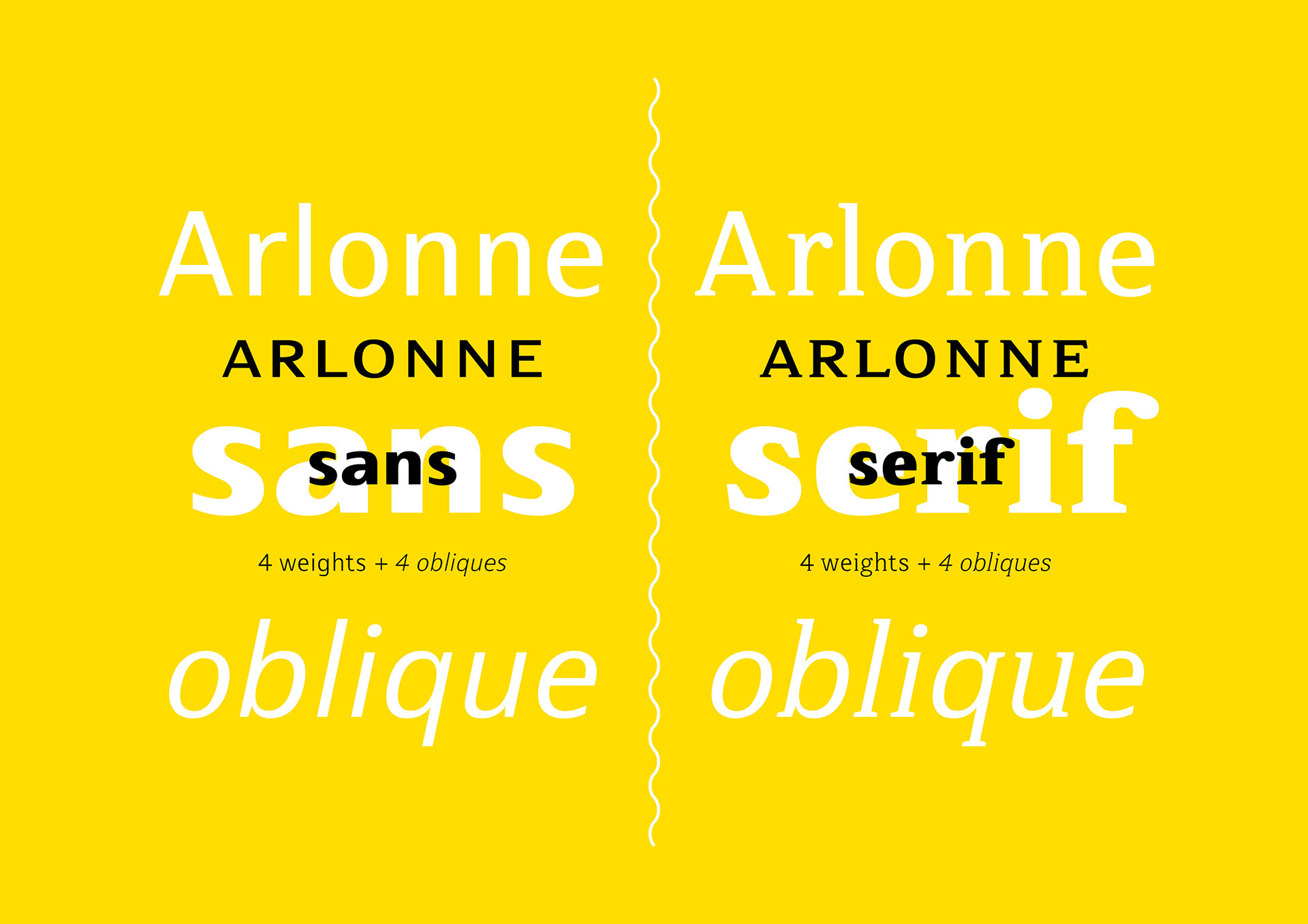 FONT DESIGN This is a preview of Arlonne which is a comprehensive two-style Sans & Serif font family with four weights and matching Oblique cuts. I have been working on Arlonne for the past two years and it is nearing completion.