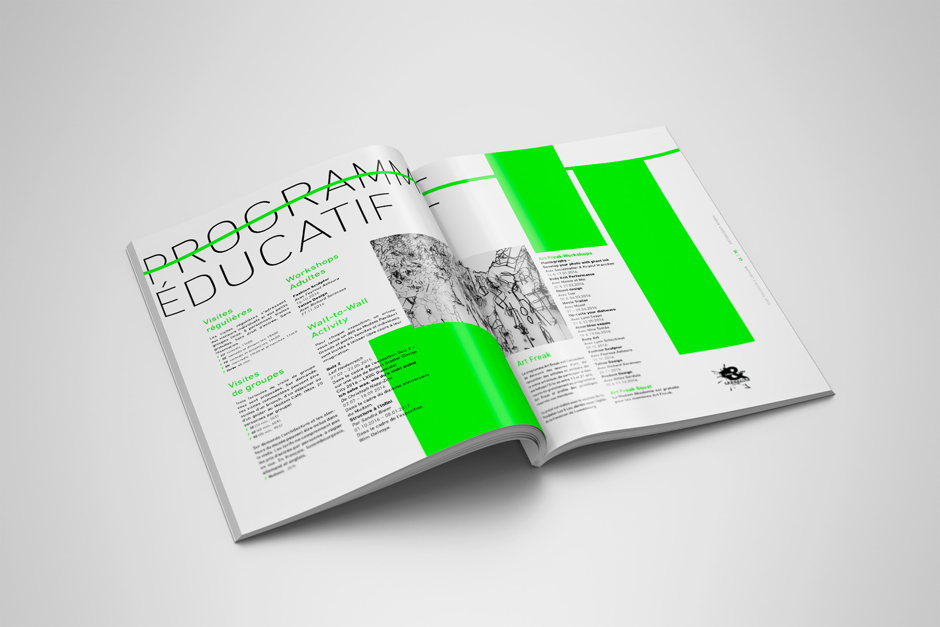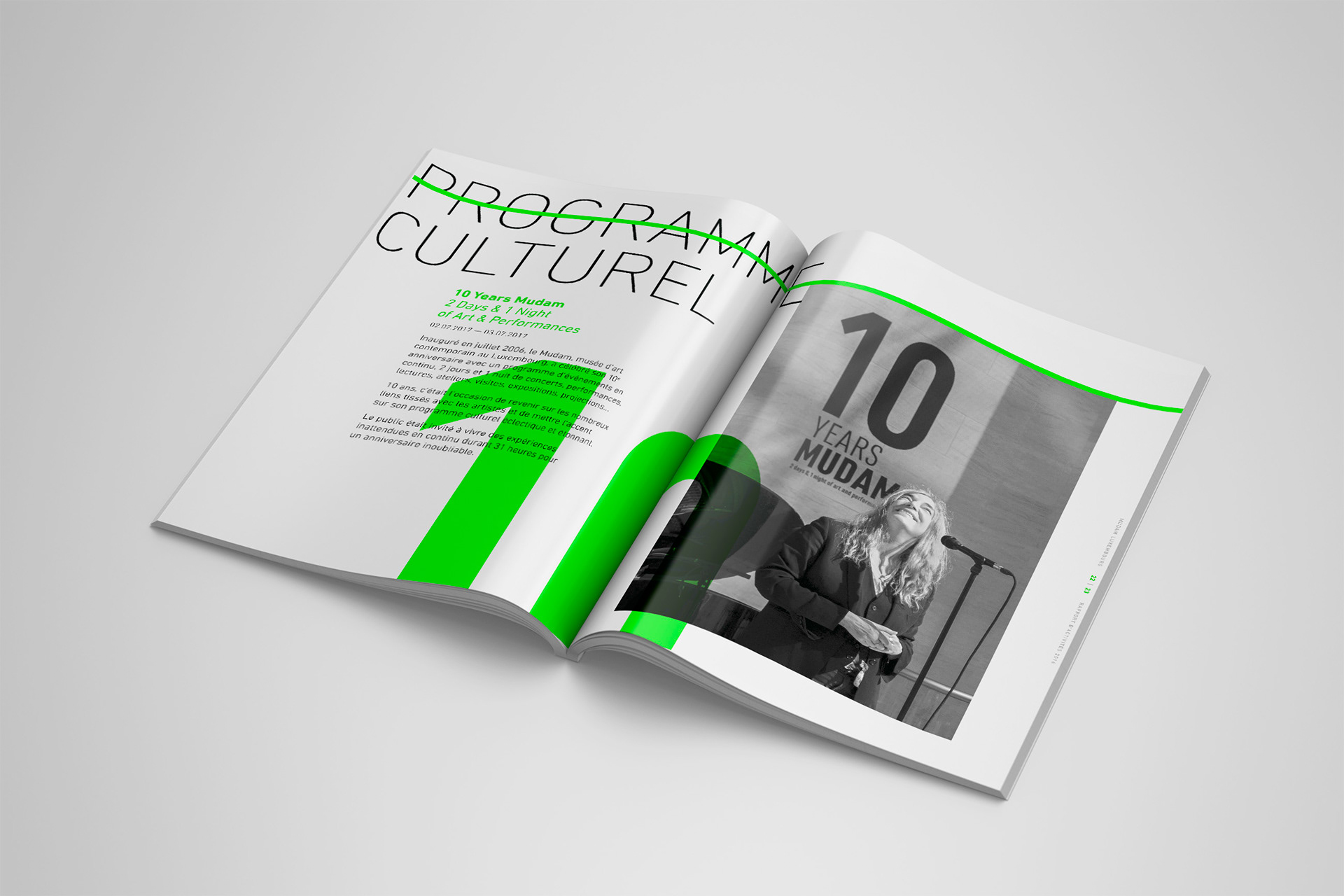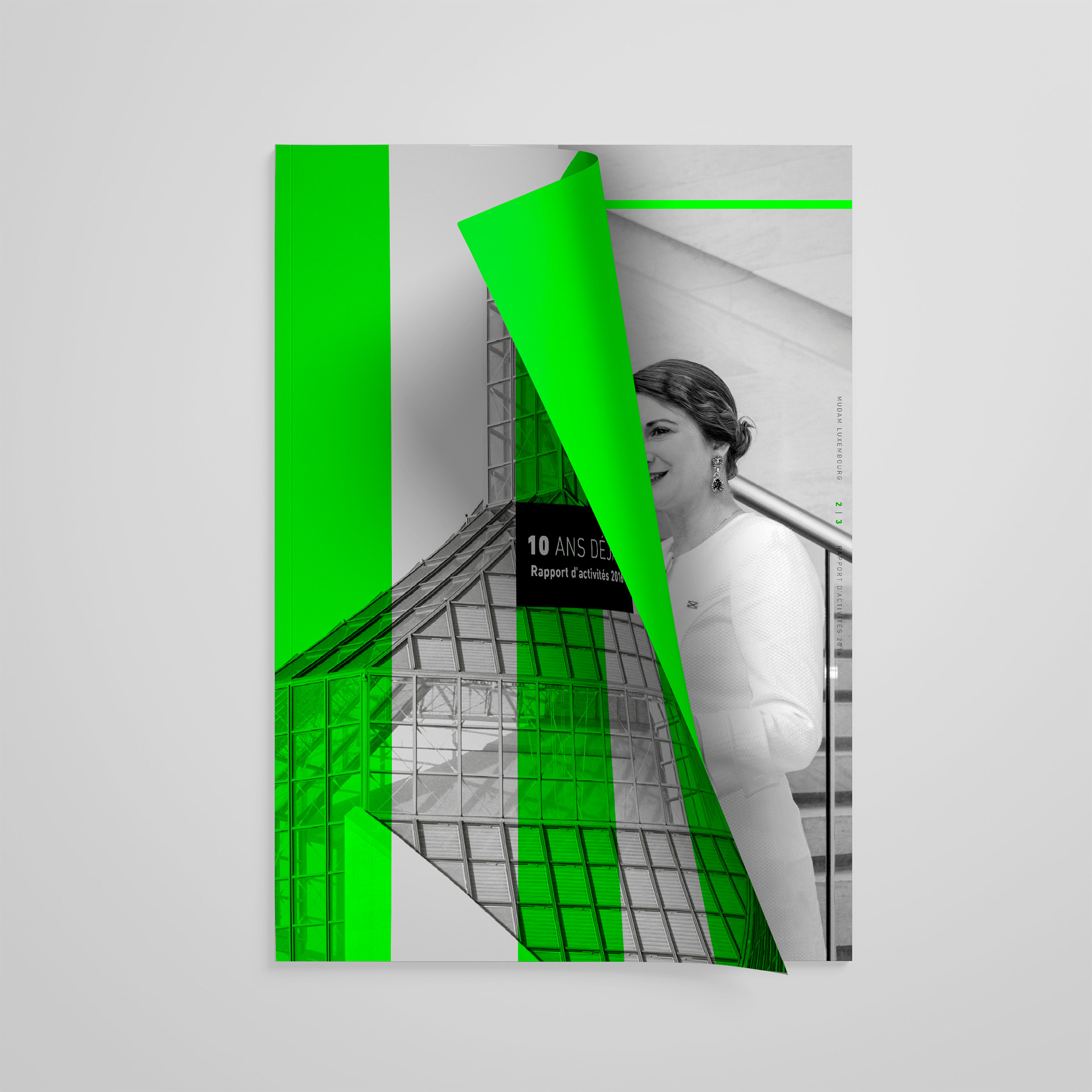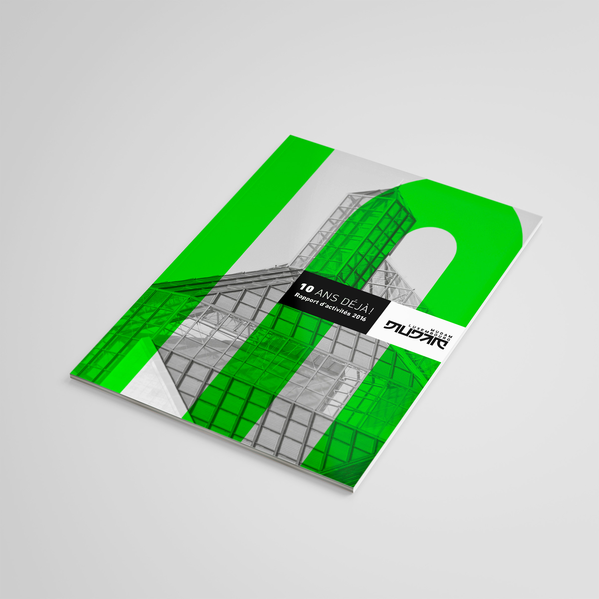 ANNUAL REPORT – 72 pages Contemporary art museum Mudam contacted us to design their 2016 activity report. It was the museum’s 10th anniversary and we had carte blanche. Of course we gladly took the opportunity to make something visually stunning. Who said annual reports need to be boring?